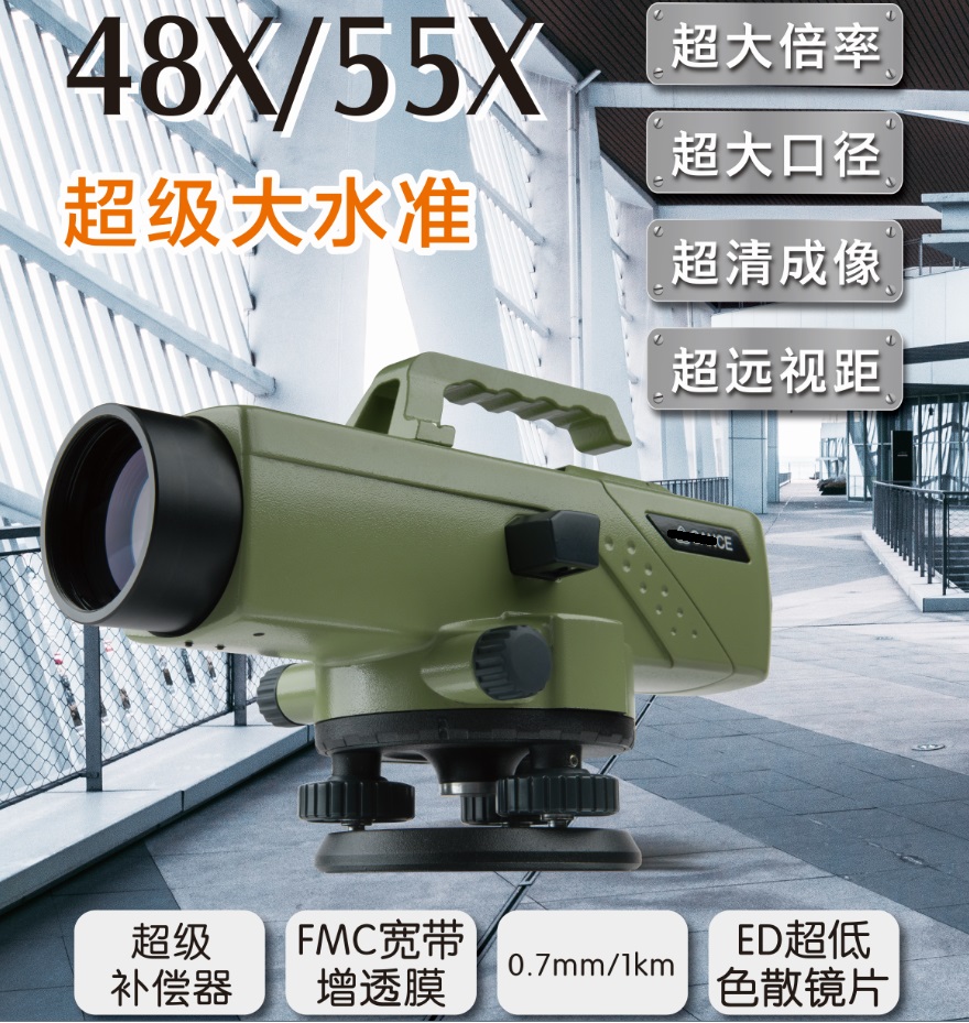 賓測BinCe DSZ1在原DSZ2基礎上將45mm口徑與32倍放大倍率提升到56mm口徑與48倍放大倍率,使成像清晰度(光學(xué)系統像質(zhì)≤3")大大提升,更是在不必附加平板測微器的條件下,將每公里往返測量標準偏差由原DSZ2的1mm精度提升到了0.7mm精度。外形上,四周棱邊角采用弧形倒角設計并新增了貫通前后的弧線(xiàn),增加了儀器外形的美觀(guān),且機身上增加了抓手的功能,為用戶(hù)提升了實(shí)用性。